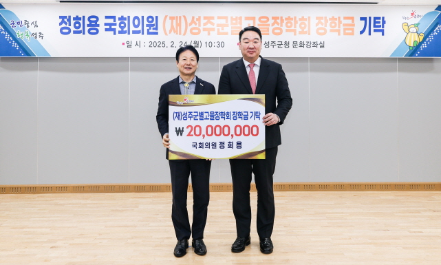 정희용 국회의원, (재)성주군별고을장학회 장학기금 기탁 누적액 2,000만원에 이르러![]() 【경상포커스=전상철기자】국민의 힘 정희용 국회의원(고령·성주·칠곡)이 성주 지역의 우수한 미래인재양성과 명품 교육도시 조성을 위해 (재)성주군별고을장학회에 총 2,000만원의 장학기금을 기탁했다.