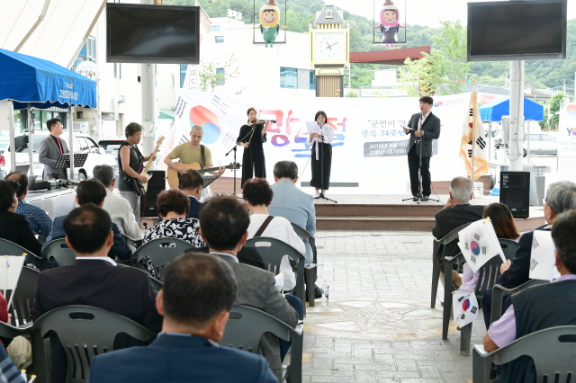 【경상포커스=전상철기자】고령군은 광복절 제74주년을 맞아 고령군민주단체협의회(회장 석성만), 김상덕선생기념사업회(대표 정희철) 공동주관으로 15일 10:30분 대가야시장 공연장에서 뜻깊은 광복절 기념행사를 가졌다.