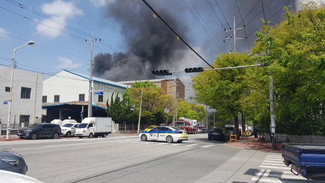 경북 칠곡군 프라스틱 공장서 화재 발생 진화 중