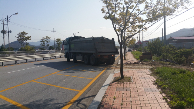 농지에 성토 덤프트럭 인도 파손 등...