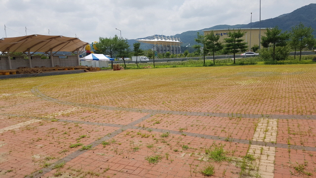 <사진> 성주군농업기술센터 앞 운동장 풀이 무성하다 / 박동석기자