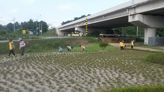 7월 들어 5번째 환경정화 및 꽃동산 관리를 해오고 있는 노인회에서는 폭염이 계속되는 더운 날씨 관계로 26일 새벽 일찍 일번지에 집합해 일부는 도로청소를, 일부는 꽃동산 잡초제거작업을 해 아침 9시경에는 모든 작업을 마쳤다.